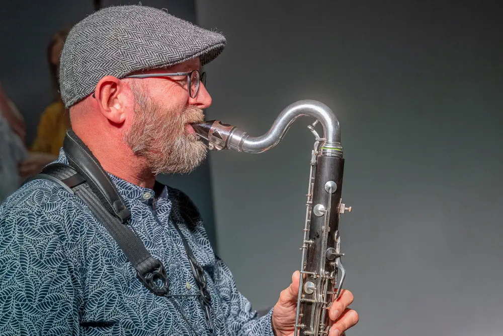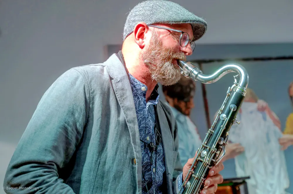rhythmisch, melodisch schöpft er das große Potential seiner Bassklarinette aus